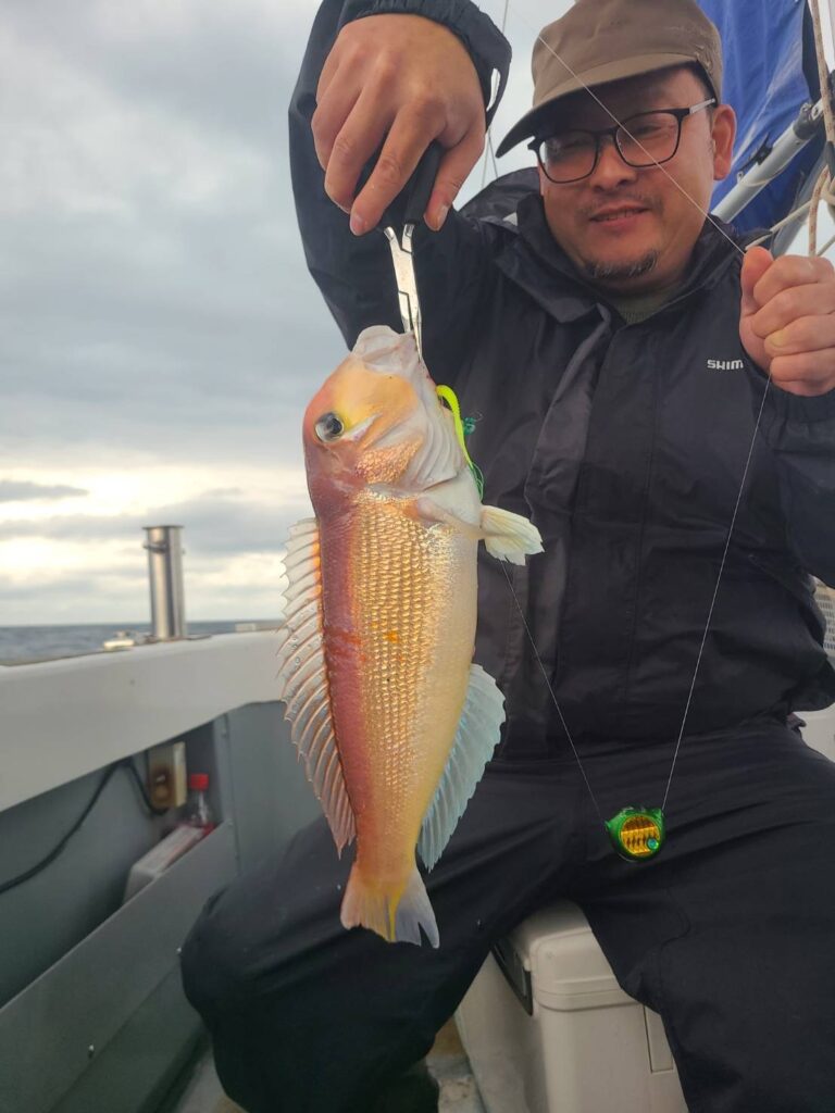 Home 釣果情報 10月12日(日) 近海 10月12日(日) 近海 釣果情報 本日も近海へ!⤴️沖は予報と違ってなかなかの波…😅 しかし昨日と違って船は流れてくれて朝イチからヒラメ、根魚、アマダイと、最後までポツポツと釣れてくれました!🎵雨もそんなに降らずで良かったです!🎵本日は粟島便からのご変更有り難う御座いました🙇♀️ また次回も宜しくお願い致します🙇♀️